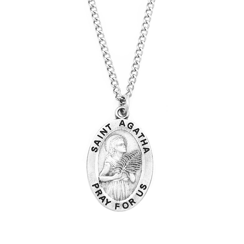 Religious Medal Pendant Necklace 18" (St Agatha Patron Saint of Nurses)