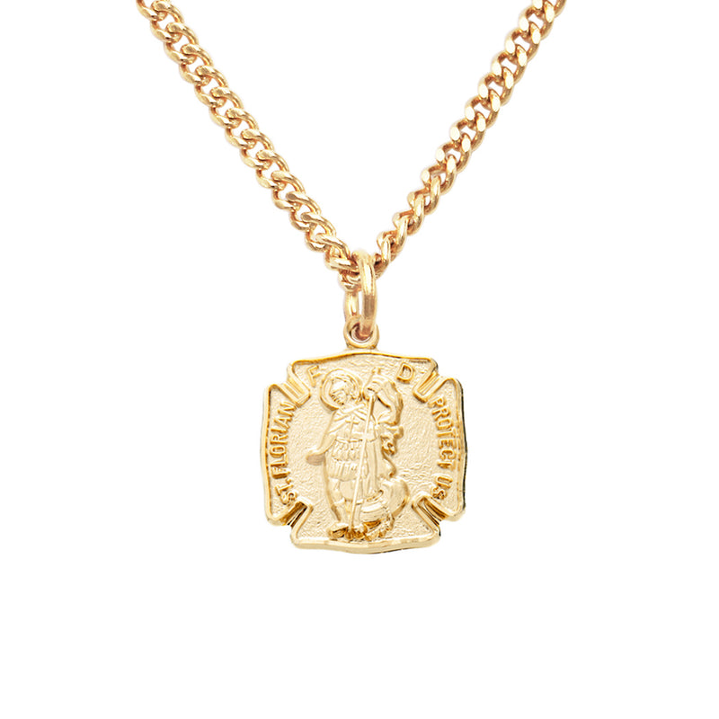 Rosemarie's Religious Gifts 16K Yellow Gold Layered Firefighter Patron St Florian Medal Pendant Necklace, 18"