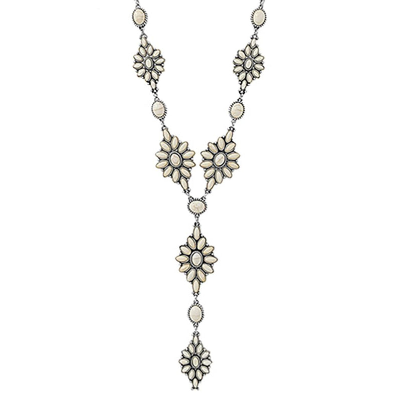 Vintage Western Y-Drop Necklace, Howlite Stone, Natural White, 24" with 3" Extender