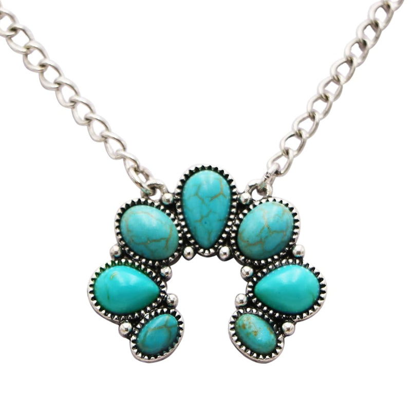 Western Style Squash Blossom Necklace, White Howlite Stone Pendant with Silver Alloy Chain, 16 Inch with 3 Inch Extender (Silver Burnished Turquoise)