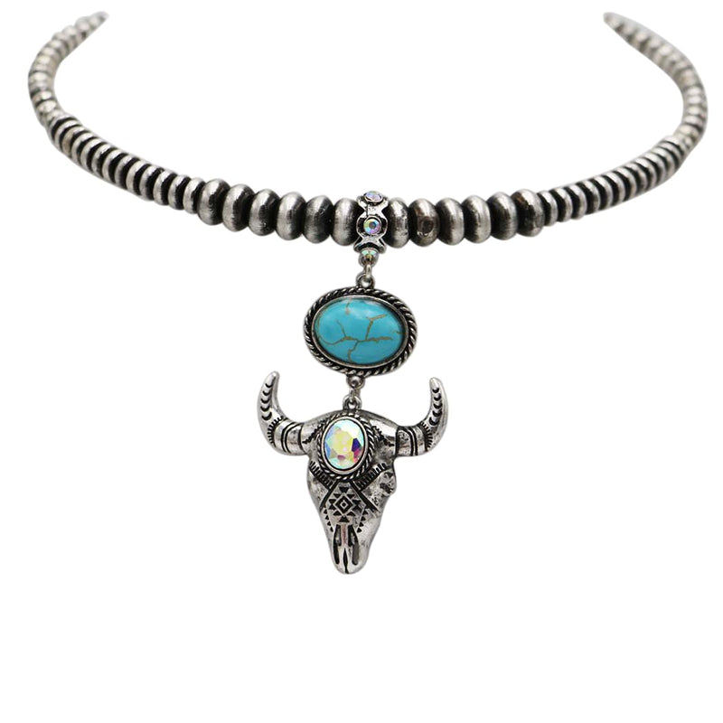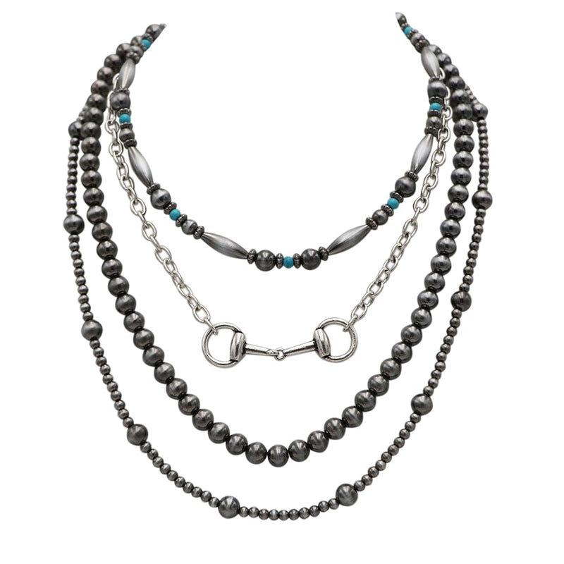 Western Layering Necklace Set, Burnished Silver with Turquoise Howlite, 3-Piece Y-Drop, Pendant Necklace and Navajo Pearl, Adjustable 16-24 Inch