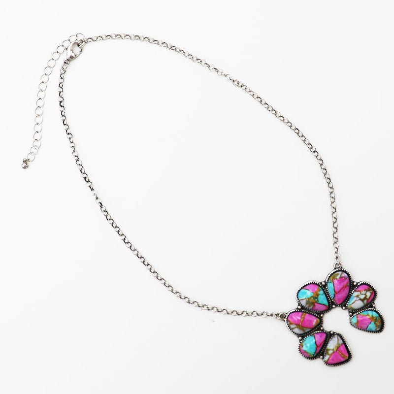 Western Style Squash Blossom Necklace, White Howlite Stone Pendant with Silver Alloy Chain, 16 Inch with 3 Inch Extender (Silver Burnished Hot Pink)