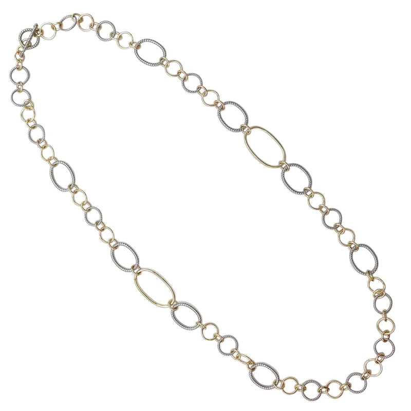 Two Tone Chain Necklace, Silver and Gold, Metal Alloy, 36 Inch Long, Textured Cable Link with Toggle Clasp