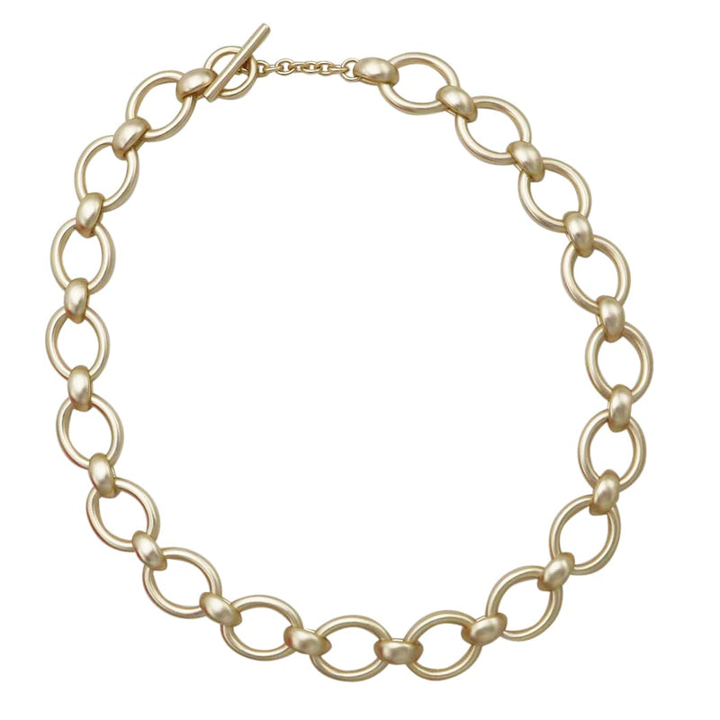 Trendy Statement Chain Oversized Link Necklace, Matte Gold, Metal Alloy Links, Toggle Clasp, 18"