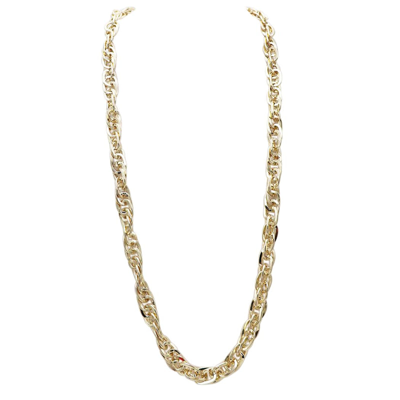 Gold Plated Chain Statement Necklace, Twisted Metal Alloy Design, Toggle Clasp, 36 Inch Length