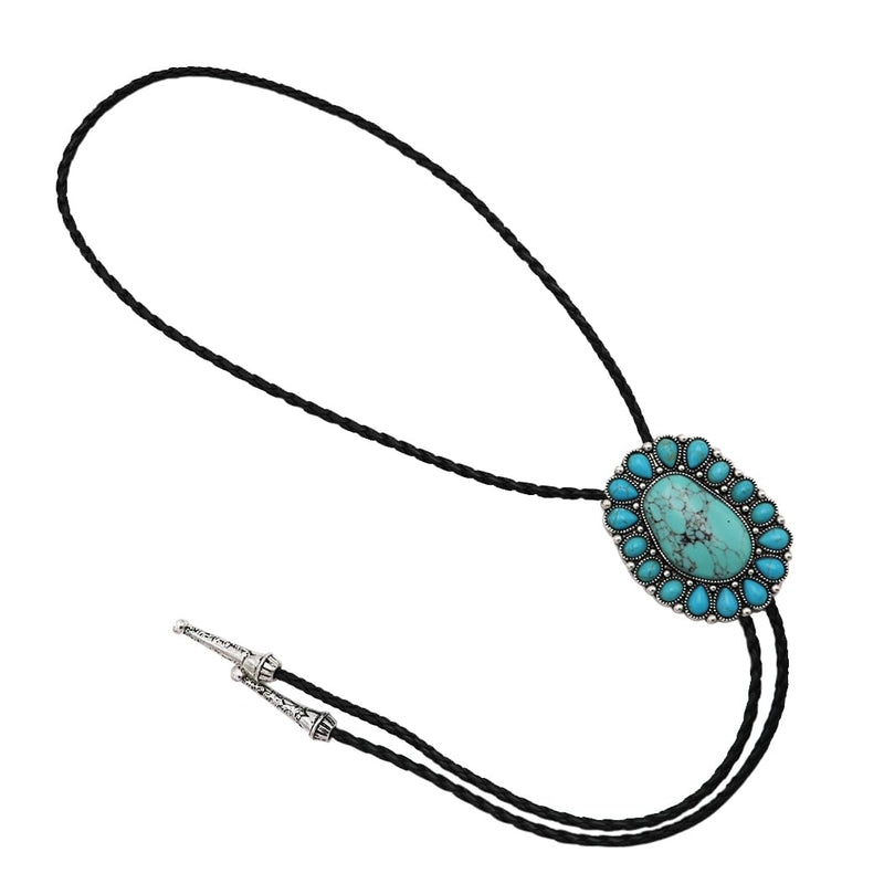 Vintage Western Bolo Tie, Turquoise Howlite Stone Pendant with Silver Tone Accents, Black Braided Faux Leather, 22 Inch