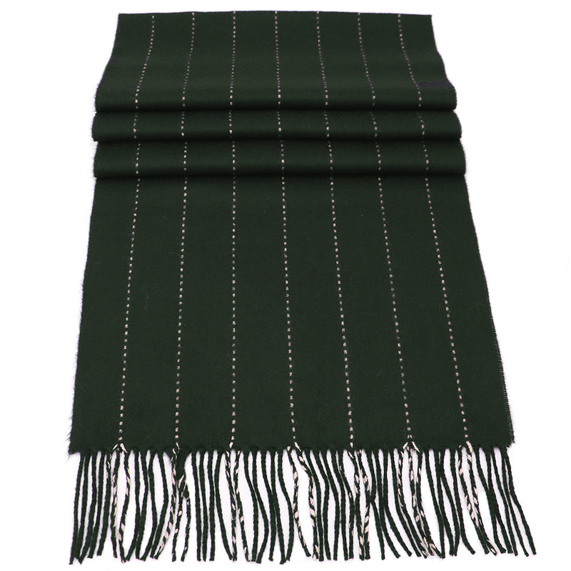 Soft Acrylic Winter Scarf, 66 x 12 Inches with 3 Inch Fringe, Cozy Cold Weather Accessory (Pinstripe, Army Green, White Pin)