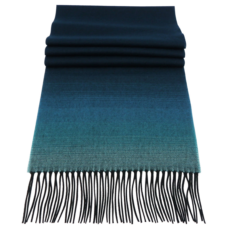 Soft Acrylic Winter Scarf, 66 x 12 Inches with 3 Inch Fringe, Cozy Cold Weather Accessory (Ombre, Navy, Blue)