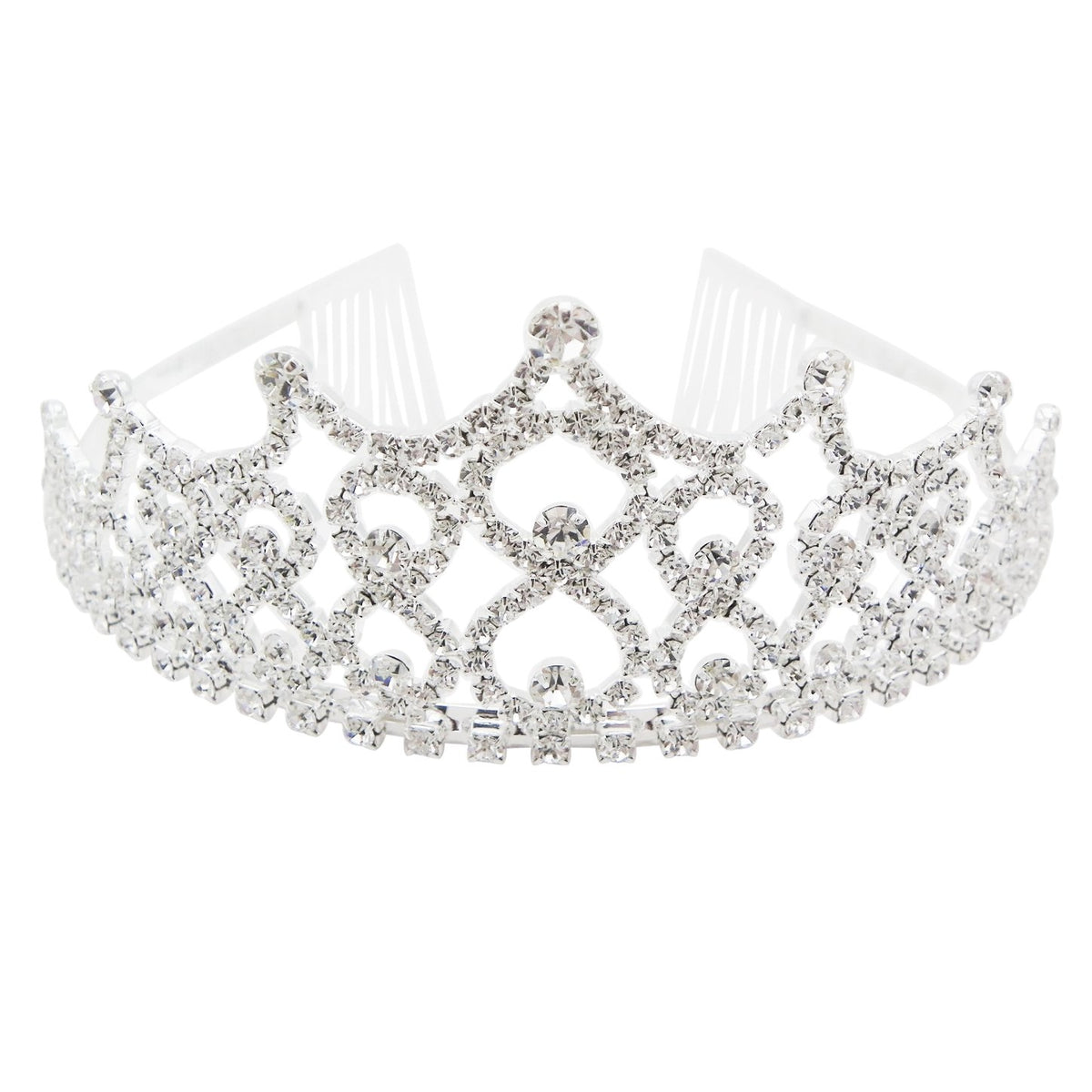 Stunning Silver Tone Crystal Rhinestone Ornate Queen's Bridal Wedding Crown Tiara Headpiece, 1.75" (Seven Point Design)
