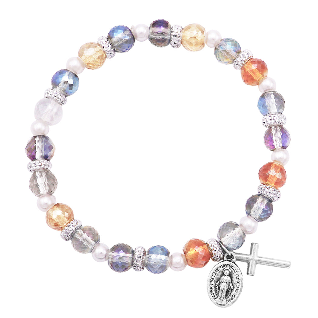 Religious Multi Color Sparkle Bead Stretch Bracelet