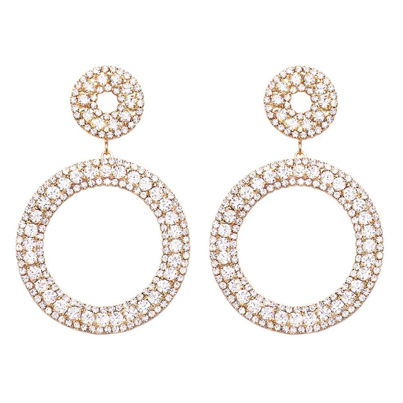 Women's Hypoallergenic Crystal Open Circle Drop Hoop Earrings, 3"