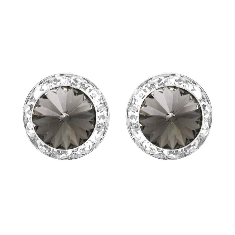 Timeless Classic Statement Clip On Earrings Made with Swarovski Crystals, 15mm-20mm (15mm, Black Diamond Silver Tone)