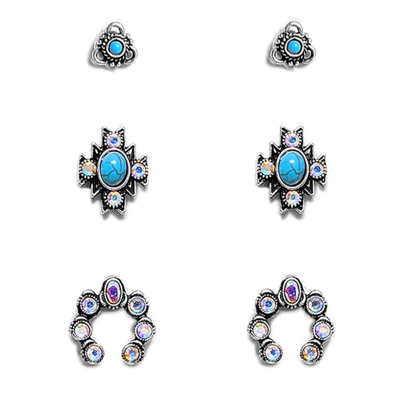 Western Cowgirl Earrings Set, 3 Pairs, Turquoise Howlite and AB Crystal Rhinestone, Silver-Tone