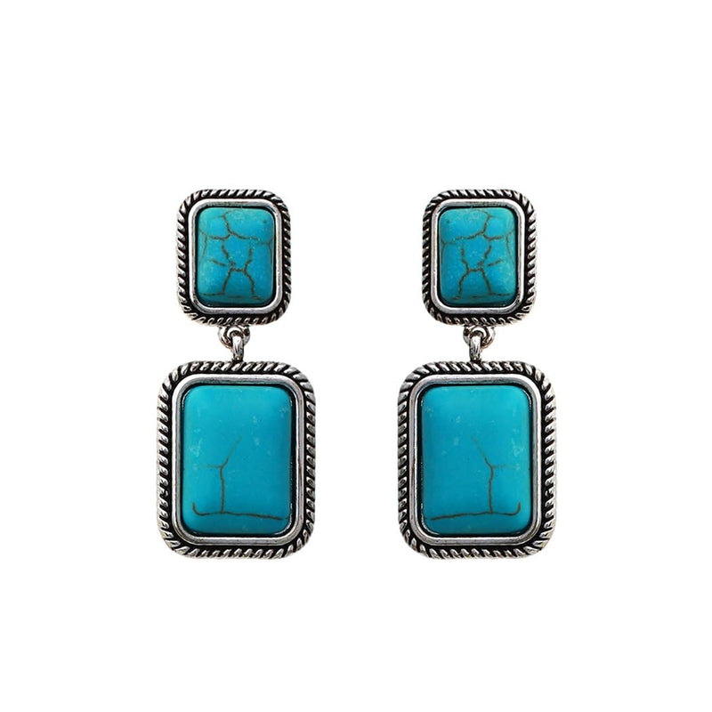 Western Style Rectangular Semi Precious Howlite Hypoallergenic Post Drop Earrings, 1.50" (Turquoise Burnished Silver)
