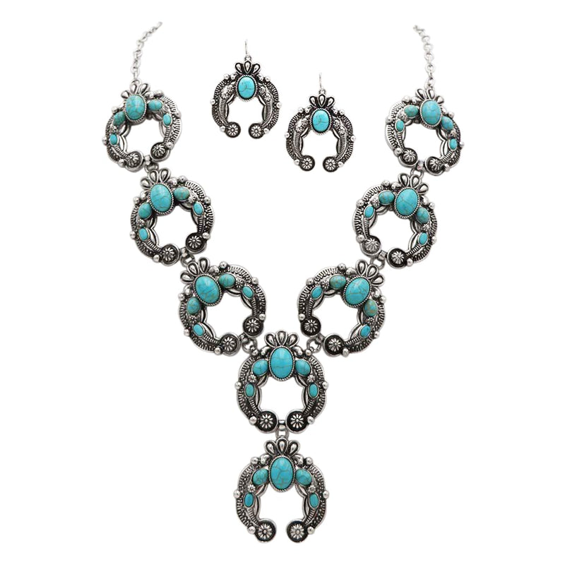 Cowgirl Chic Western Necklaces for Women with Semi-Precious Howlite Stone & Earrings - Squash Blossom Necklace & Earrings Set