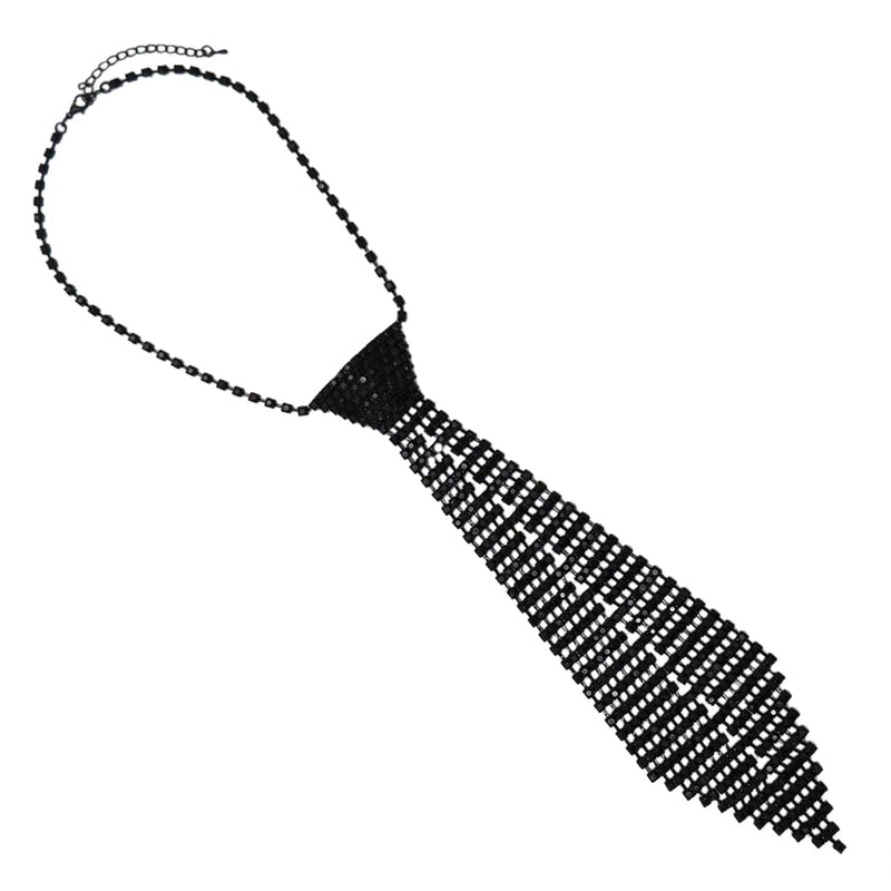 Stunning Jewlery Tie Crystal Rhinestone Necktie Necklace (Mid Length Black Tone Black Crystals 10")