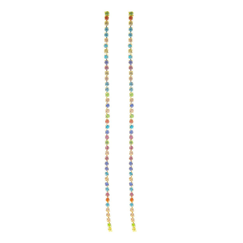 Crystal Rhinestone Extra Long Strand Shoulder Duster Drop Earrings, 2.5mm, 5" (Multicolored Crystal Gold Tone/Single Strand)