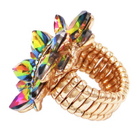 Dazzling Crystal Marquis Leaf Cluster Statement Stretch Cocktail Ring (Rainbow Vitrail Medium Gold Tone)