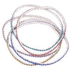 • Set of 5 thin bangle bracelets with glass crystals. Stylish and simple design of a single row of small crystal rhinestones in a prong setting on stretch bands.