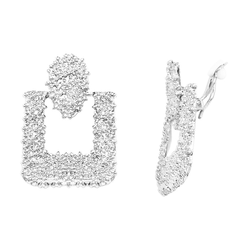 Statement Chunky Nugget Metal Door Knocker Style Clip On Hoop Earrings, 2.5" (Square Hoop 1.87", Silver Tone)